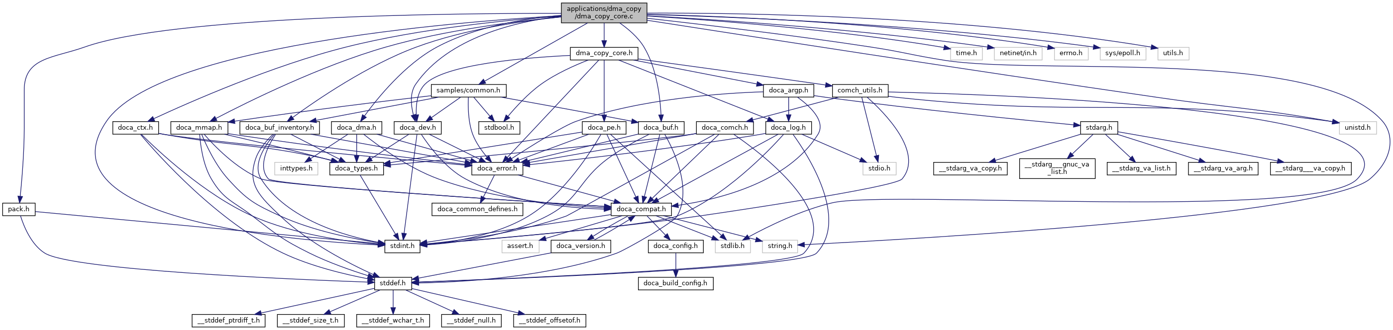 #include <stdint.h>#include <string.h>#include <time.h>#include <netinet/in.h>#include <errno.h>#include <sys/epoll.h>#include <unistd.h>#include <doca_buf.h>#include <doca_buf_inventory.h>#include <doca_ctx.h>#include <doca_dev.h>#include <doca_dma.h>#include <doca_mmap.h>#include <samples/common.h>#include "pack.h"#include "utils.h"#include "dma_copy_core.h"